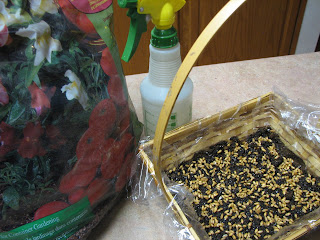 In researching I found several cutlures where setting out seeds to sprout before Easter was a common tradition. Italy, Greece, Finland are mentioned. The symbol of a seed bringing forth new life and the image it calls to mind of the death and resurrection make this a timely project for the Easter season.
