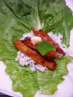 - 1 leaf Romaine lettuce (or any large green leaf lettuce other than iceberg), with the hard core cut out