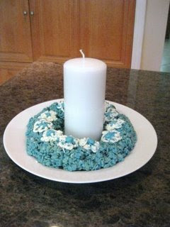 Note: This picture above is only a half recipe because someone got a hold of the marshmallows and ate half the bag. Also, I had planned on using the blue and white jelly beans left over from Easter as the center of the flowers, but they got eaten too before I could use them.