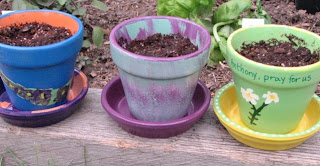 And since we are talking about herbs, let's look at another herb, one associated with a June saint, St. Anthony of Padua. We have just under a month to grow some pots of basil to help celebrate his feast day in a unique way. According to the Saint Anthony of Padua website, it is customary to decorate with pots of sweet basil (Ocimum basilicum) on that day and to give some away to friends with prayers invoking this Saint. Hopefully posting now gives you plenty of time to get some ready and embrace this tradition.We purchased some small terra cotta pots at the craft store and painted them to remind us of St. Anthony. His symbols include the lily, bread, Christ Child, book, fish. We used acrylic paints and Sharpie markers to decorate the basil pots. To help keep paints from fading or wearing away (especially if pots will be used outside), use 2 coats of a clear acrylic indoor/outdoor sealant such as Krylon spray to coat after painting.