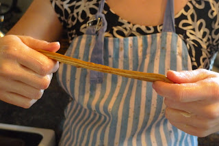 9. When the taffy is golden in colour you can cut it into chunks and then wrap it in wax paper. Or you can simply eat it. Yum!