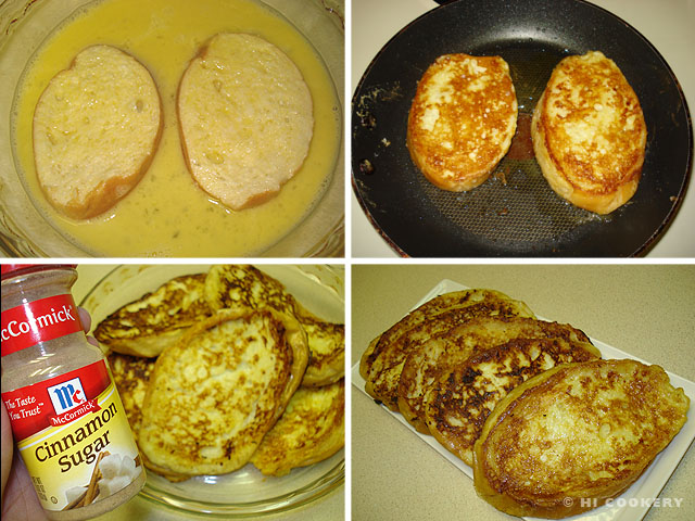 - Day-old French or Italian loaves are preferred for this recipe as regular white bread slices are too soft and become mushy when soaked in the flavored milk and eggs.