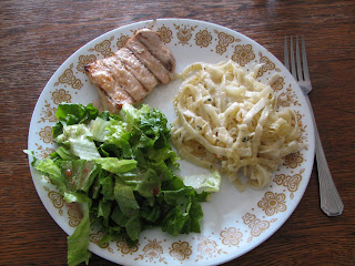 Add fettuccine to boiling water and cook until tender but still firm, about 8 to 10 minutes. Drain pasta. Reserve 1/3 cup of the pasta cooking water.