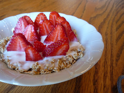 Pentecost ParfaitLayer granola, vanilla yogurt and sliced strawberries in a dish. The red slices of strawberries can be arranged in the parfait to resemble the tongues of fire/descent of the Holy Spirit. This cool and light dish makes a wonderful breakfast or afternoon snack. I thought it would be symbolic to arrange thirteen strawberry tongues of fire - one for each of the apostles, as well as one for Our Lady,